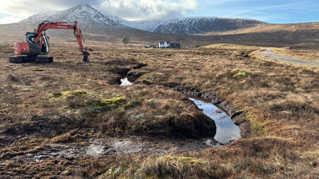 Since November 2024, the British Dragonfly Society has been working with landowners and contractors to make hundreds of bog pools more resilient to periods of dry weather. In partnership with a variety of estates, work has been carried out across eight locations, including Mamore Estate, Dundreggan and Glencoe, in the north-west Highlands as part of the Dragonflies on the Bog project. This project, supported by the Scottish Government’s Nature Restoration Fund, managed by NatureScot, follows earlier pilot work with the Corrour Estate on the edge of Rannoch Moor.